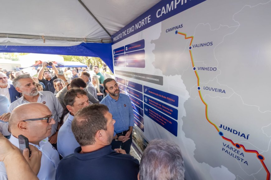 O projeto do TIC (Trem Intercidades) se consolida como uma das principais iniciativas de mobilidade em andamento no Estado de São Paulo. As obras do Eixo Norte, que ligará Campinas a São Paulo, tiveram início nesta quarta-feira (8), em Vinhedo, com a presença da Prefeitura de Jundiaí. Representando o município, o prefeito Gustavo Martinelli acompanhou o marco inicial das intervenções ao lado do governador de São Paulo Tarcísio de Freitas, que prometem transformar a dinâmica de deslocamento em Jundiaí e região.