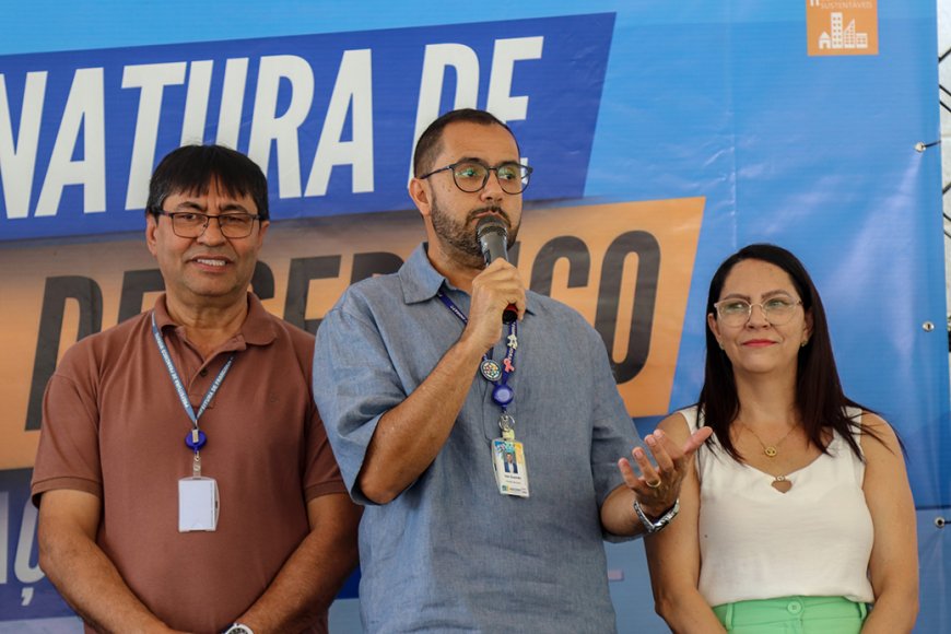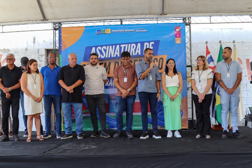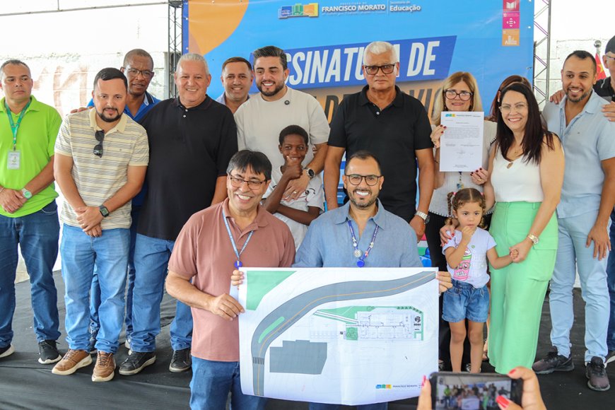 Com a presença do prefeito, Ildo Gusmão, da primeira-dama e presidente do Fundo de Ação e Economia Solidária (FAES), Ana Gusmão, do vice-prefeito, Chicão Bernabé, dos vereadores Rodrigo Marrone, Josias Capoeira, Jair Sene, Dr. João Paulo, Adauto de Jesus, João Raposo, Camarão do Gueto e Hélio Gomes, da secretária de Educação, Marisa Bazaglia, do secretário adjunto de Educação, Gabriel Azevedo, da diretora do departamento de Educação Infantil, Viviane dos Anjos, do secretário de Infraestrutura e Obras, Fred Nicodemo, e Elton Pereira, representante da empresa responsável pela obra, além de secretários e secretárias municipais, foi assinada hoje a ordem de serviço para o início da construção de mais uma creche em Francisco Morato, a Creche Municipal Praça da Cidadania.