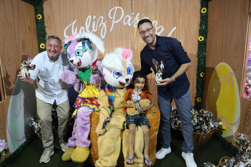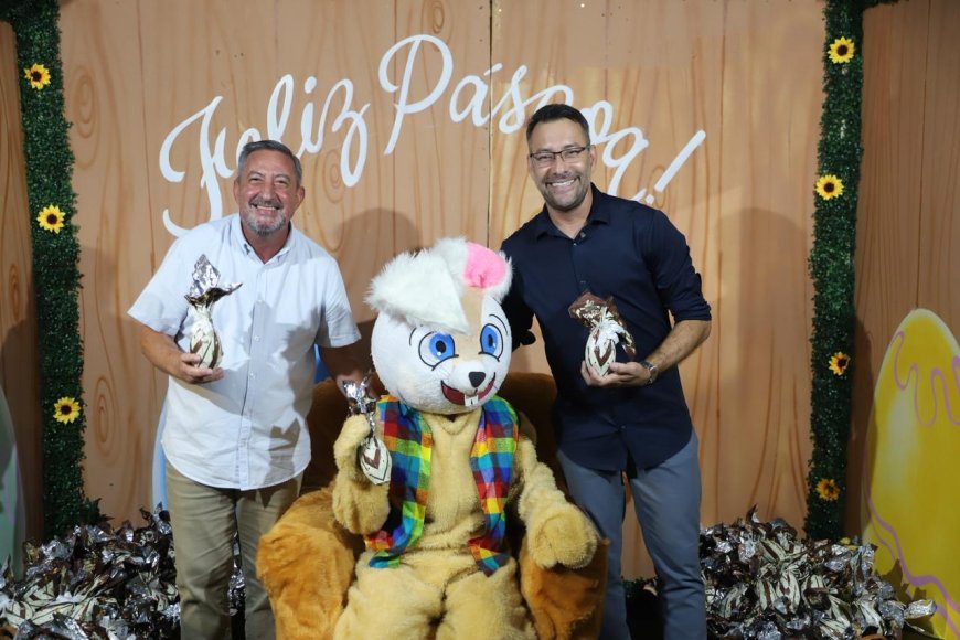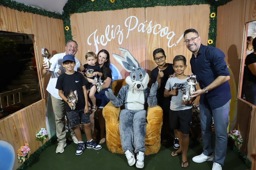 O prefeito Gilmar Lagoinha esteve presente na celebração e participou da entrega dos ovos de Páscoa, ao lado do vice-prefeito Luiz Aragão, reforçando o espírito de união e proximidade com a população. A iniciativa teve como objetivo proporcionar um ambiente de festa, criando memórias afetivas e fortalecendo os laços entre as famílias da cidade.